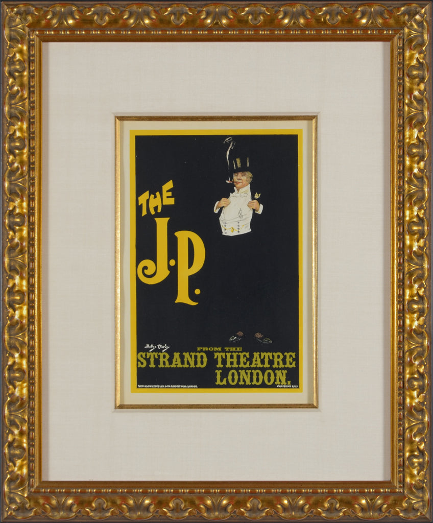 “The J.P (Plate 148)” was created by Dudley Hardy who was the eldest son of the marine painter Thomas Bush Hardy under whose influence and tutelage he first learned to draw and paint. His interest in illustration led to the production of French graphic influenced poster imagery, most notably “The Yellow Girl” advertisement for Today magazine, and “Gaiety Girls.” “Dudley Hardy” was a prolific artist who really introduced the color poster to England. “The J.P (Plate 148)” is a 13 x 9 – inch original stone lithograph created in 1898.