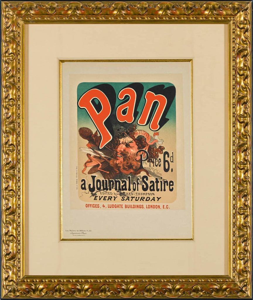 "Pan (Plate 81)" is an original stone lithograph created by Jules Chéret in 1897 as part of Les Maîtres de l'Affiche. The artwork is framed with the latest archival framing techniques, and it is accompanied by a certificate of authenticity.