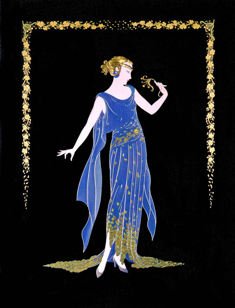 Erté was born Romain de Tirtoff in St. Petersburg, Russia on November 23rd, 1892 and was raised amidst Russia's social elite. At the age of five he created an evening gown for his mother and managed to persuade the adults to craft it, they were astounded by the results. In 1912, Romain left St. Petersburg for Paris at the age of nineteen with the aim of becoming an artist. After working with Paul " Le Magnifique" Poiret on several theatrical productions Romain, still under the pseudonym of Erte, began to work more independently. He hand-crafted original costume and fashion designs for many of the era’s most renowned actresses, including Joan Crawford, Lillian Gish, Marion Davies, Anna Pavlova, Norma Shearer, and others. His masterpieces for the stage included extravagant production designs at venues such as New York’s Radio City Music Hall, the Casino de Paris, and the Paris Opera. In 1915 he began his long professional relationship with Harper's Bazaar and created 240 covers for the esteemed magazine. For 6 months in 1916, Erté simultaneously worked with Vogue as well. As a result of his highly publicized success, Erté would later be called the father of the ‘Art Deco’ movement.