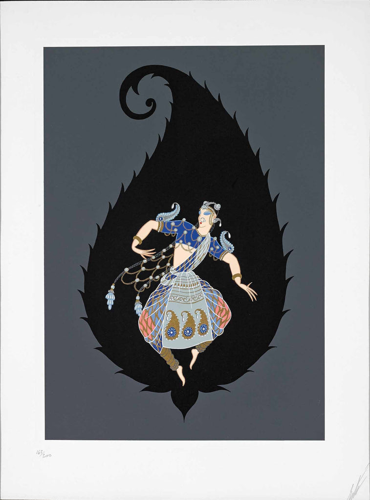 "Bayadère" is a serigraph created by Erté in 1986. From the edition of 320, the artwork is signed 'Erté' lower right. The image size is 19 x 16.5". The artwork ships framed and accompanied by a certificate of authenticity.