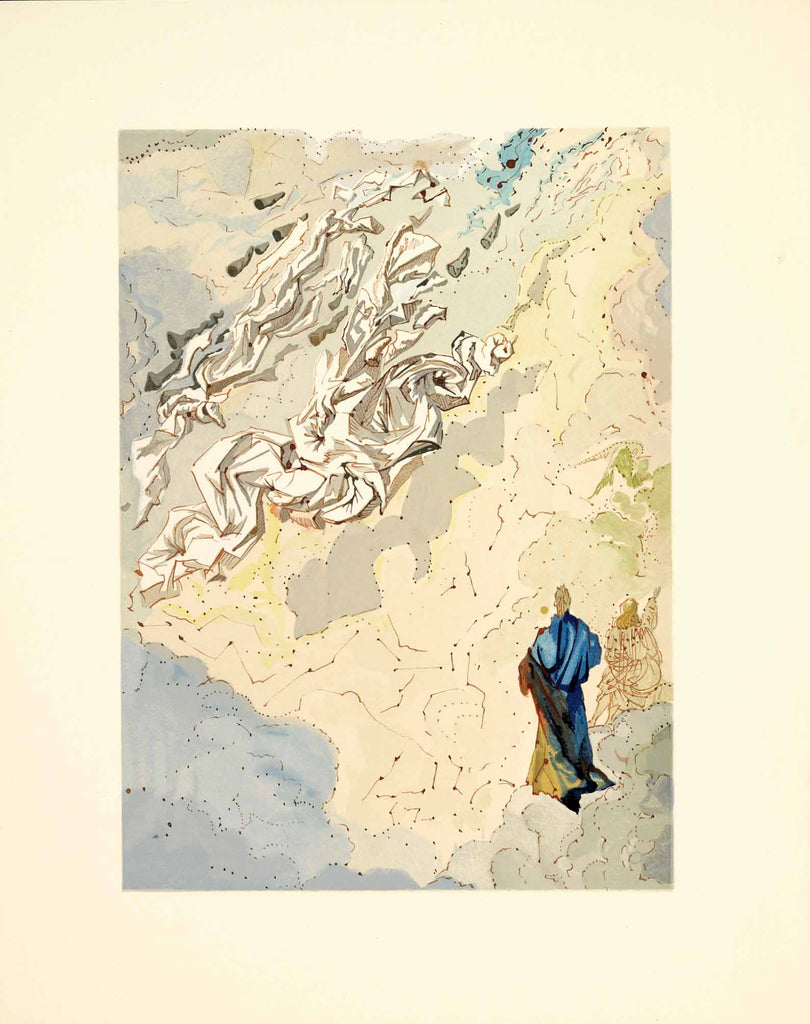 In the 1950s, Dalí created 100 watercolors to depict each of Dante’s cantos—34 for 'Hell', 33 for 'Purgatory', and 33 for 'Heaven'. Master engravers then meticulously translated these paintings into wood engravings for print.