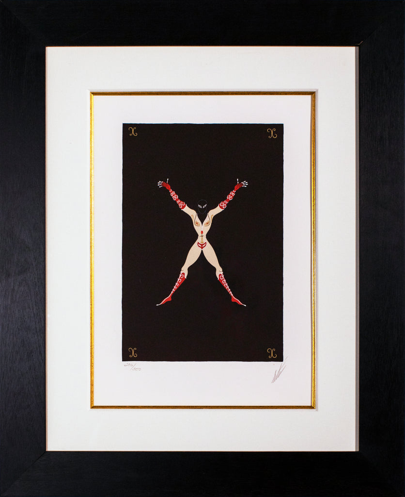 "Letter X" is a lithograph and serigraph created by Erté for his 1976 'Alphabet' suite. From the edition of 491, and the artwork is signed 'Erté' lower right. The image size 15.75 x 10.5" and the artwork is framed in a contemporary black frame. The artwork ships framed and accompanied by a certificate of authenticity.