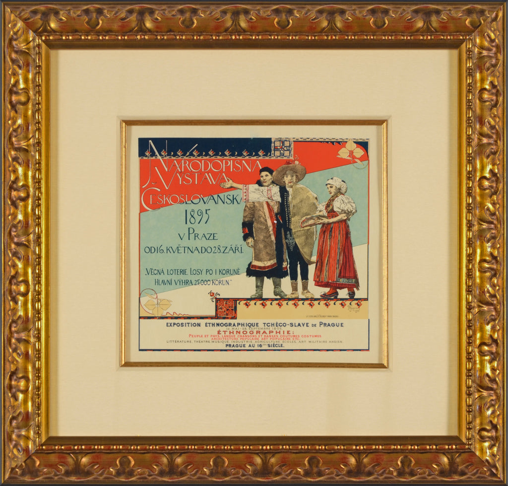 “Czechoslav Exhibition (Plate 56)” was created by Voytech Hynais who was a Czech painter, designer, and graphic artist. He designed curtain of the Prague Nationale Theatre, decorated some buildings in Prague and Vienna. “Czechoslav Exhibition (Plate 56)” is an original lithograph in colors. The antique lithograph was created by Voytech Hynais in 1894 and released in January 1897. The image size: 9.75 x 10.25 inches Paper size is 15.75 x 11.25 –inches.