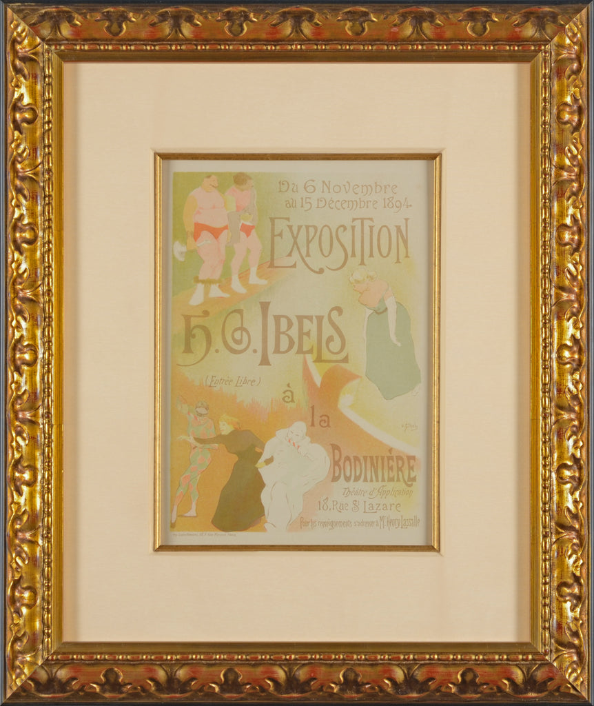 “H.G Labels Exhibition (Plate 1898)” was created by Henry Gabriel Ibels who was a French illustrator printmaker. His images were powerful and heavily graphic, in keeping with the movement that was a generous admixture of fine art, graphic design, and advertising. ‘H. G Labels Exhibition (Plate 1898) is a 12.25 x 9 – inch original stone lithograph created in 1898.