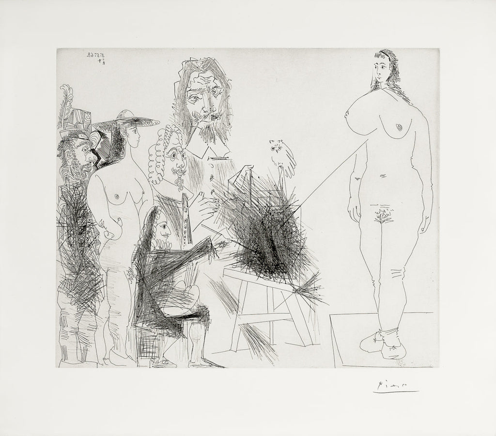 Around the Unknown Masterpiece: Painter, Model, Couple and Two Painters (347 Series, B.1544) by Pablo Picasso