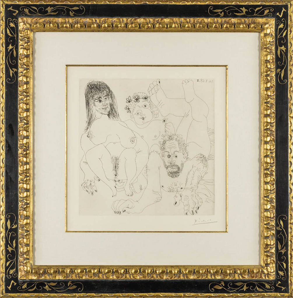 Literature: Bloch, G. Pablo Picasso: Tome II – Catalogue de l’œuvre grave et lithographié 1966-1969. Galerie Kornfeld & Cie., Berne, 1986. pg. 252. no. 1697. Baer, B. Picasso Peintre-Graveur: Tome VI - Catalogue Raisonné de l’œuvre Gravé et Des Monotypes 1966-1968. Galerie Kornfeld, Berne, 1994. pg. 436. no. 1713.