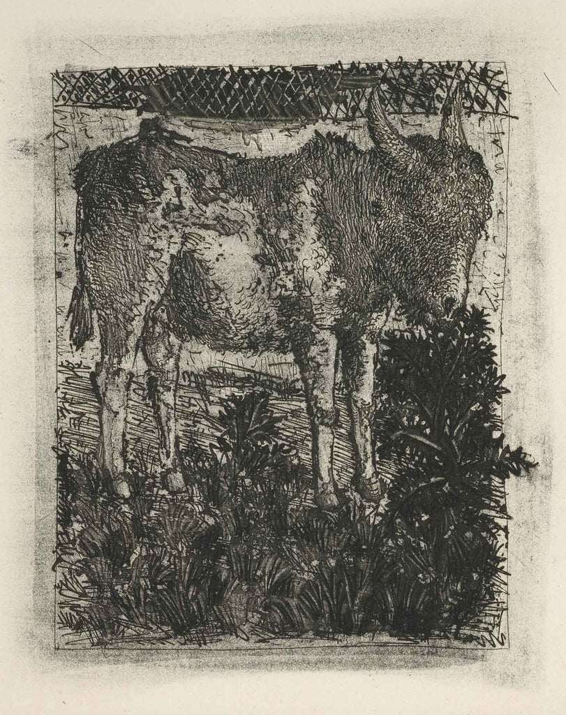 "The Donkey (B.329)" is an aquatint created by Pablo Picasso in 1942 for his series 'Histoire Naturelle - Textes de Buffon'. From the edition of 262, the image size is 11.5 x 8.5". The artwork ships framed and accompanied by a certificate of authenticity.