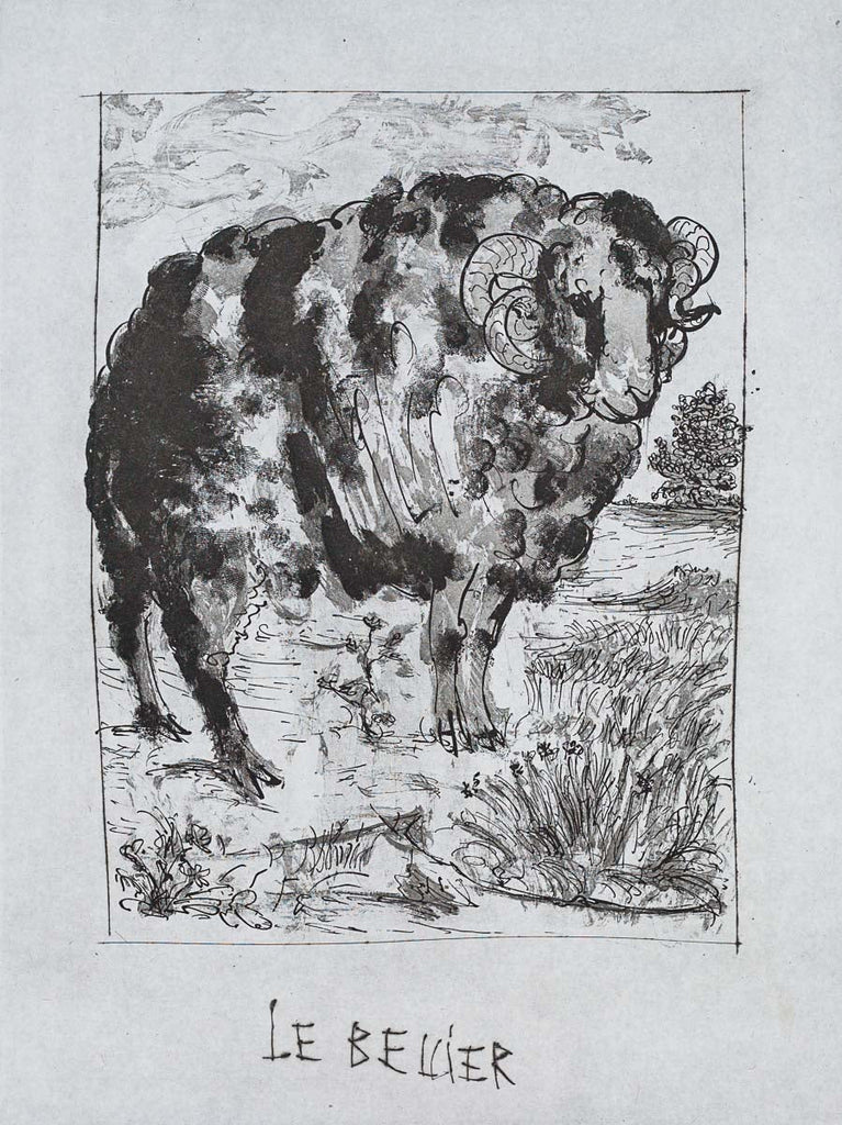 "The Ram, 1942 (Histoire Naturelle - Textes de Buffon, B.332)" is an aquatint with drypoint on chine created by Pablo Picassoin 1942. The image size is 10.6" x 7.9". The artwork ships framed and with a certificate of authenticity.