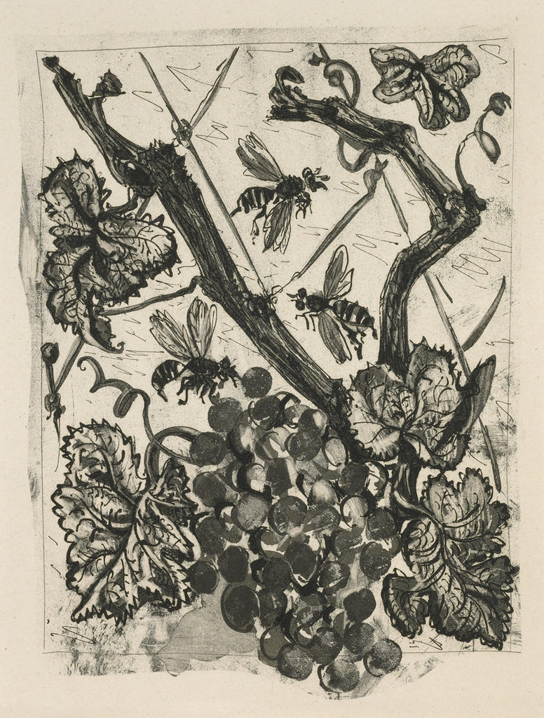 "The Wasp (B.351)" is an aquatint created by Pablo Picasso in 1942 for his series 'Histoire Naturelle - Textes de Buffon'. From the edition of 262, the image size is 11.5 x 8.5". The artwork ships framed and accompanied by a certificate of authenticity.