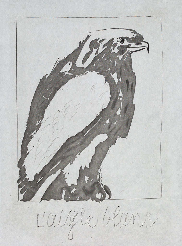 "The White Eagle (B.340)" is an aquatint with drypoint on chine created by Pablo Picasso in 1942 for his series 'Histoire Naturelle - Textes de Buffon'. The artwork is from the edition of 262, with remarque. The image size is 10.5 x 8.15" and the artwork is framed in a contemporary silver and gray frame. The artwork ships framed and accompanied by a certificate of authenticity.