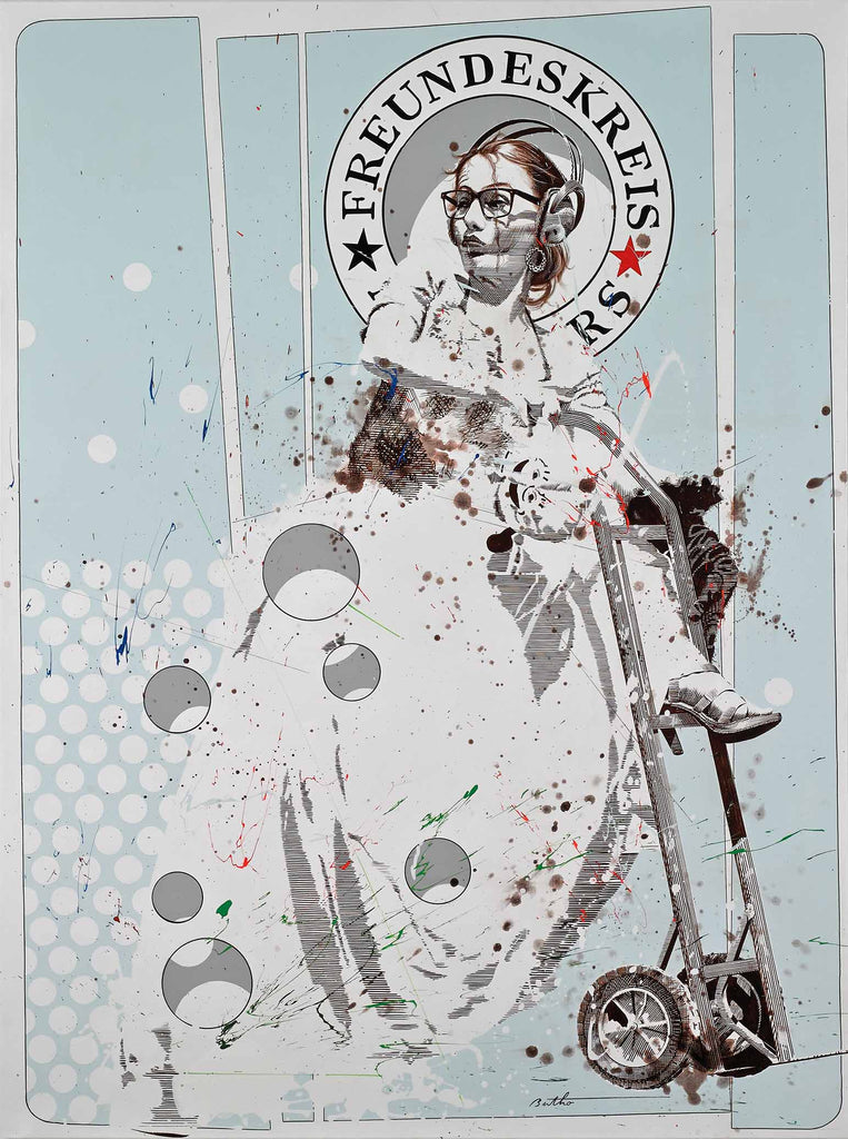Philippe Bertho is classically trained having enrolled in art school in Reims, France in the early 1990s. There, he spent considerable time studying decorative trompe l’oeil painting. Tromp l’oeil (“to fool the eye”) is a technique used by artists to create the illusion of a 3rd dimension on a flat surface. It is obvious from Bertho’s artwork that he fools much more than the eye…he draws one in by the heart and also quite frequently by the funny bone. Despite his ability to perfectly render reproductions of masterworks, Bertho was drawn to the world of fantasy and illusion. As his style developed, he drew inspiration from renowned contemporary trompe-l’oeil artist, Jacques Poirier. In his early work, Bertho exhibited ingenuity by including unusual materials in his paintings. Employing objects that other’s found useless – corrugated iron, rusted metal boxes, old light bulbs – he was fascinated with his ability to bring his art alive by creating dimension – either by the addition of these items directly onto his canvas or later through the technique of trompe l’oeil.