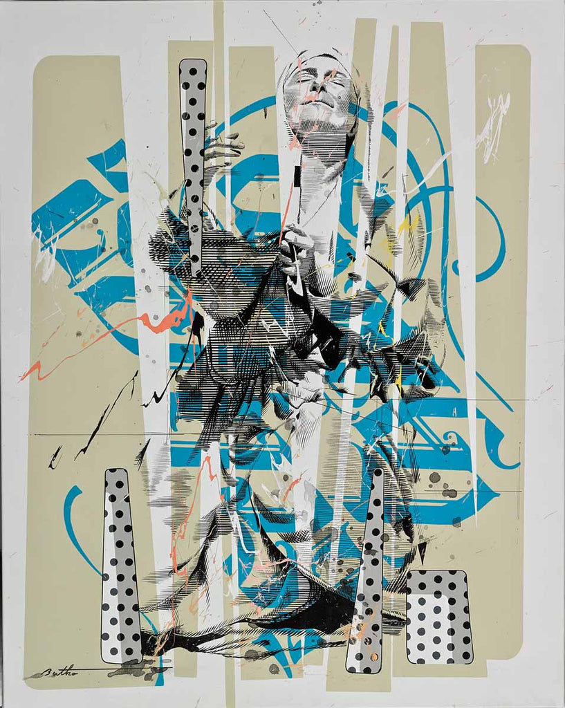 "Madona Lebignoux" is an acrylic on canvas painting created by Philippe Bertho in 2013. The painting is signed 'Bertho' lower left. The canvas size is 36.25 x 28.75". The artwork ships framed. Please contact the gallery regarding available frame options.