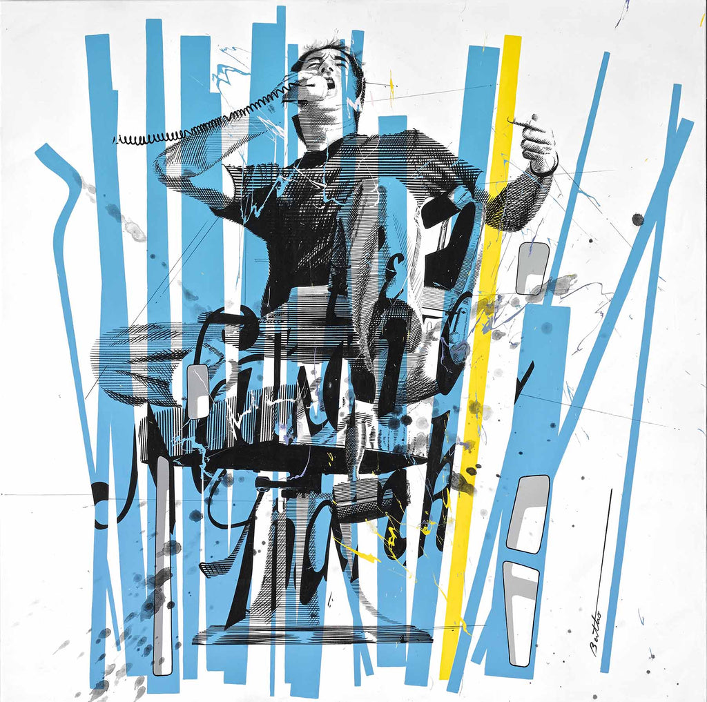 "Nestor Alamasse" is an acrylic on canvas painting created by Philippe Bertho in 2013. The artwork is signed 'Bertho' lower vertical right. The canvas size is 31.5 x 31.5". The artwork ships framed. Please contact the gallery regarding available frame options.