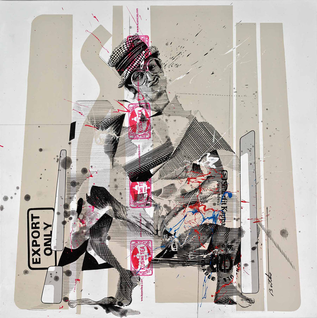 "Quentin Stylnox" is an acrylic on canvas painting created by Philippe Bertho in 2013. The artwork is signed 'Bertho' lower vertical right. The canvas size is 27.5 x 27.5". The artwork ships framed. Please contact the gallery regarding available frame options.