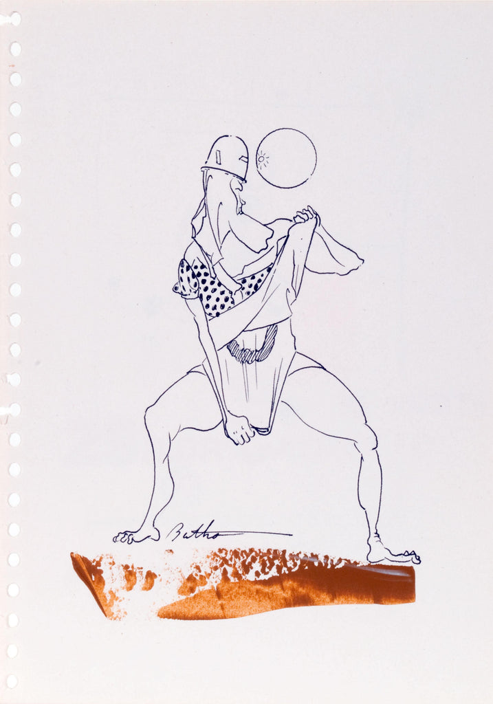 "Untitled #266" is a ink sketch on paper created by Philippe Bertho in 2011. The drawing is signed 'Bertho' lower left. The image size is 11.75 x 8.25" and the artwork is framed in a contemporary gold-tone frame. The artwork ships framed.