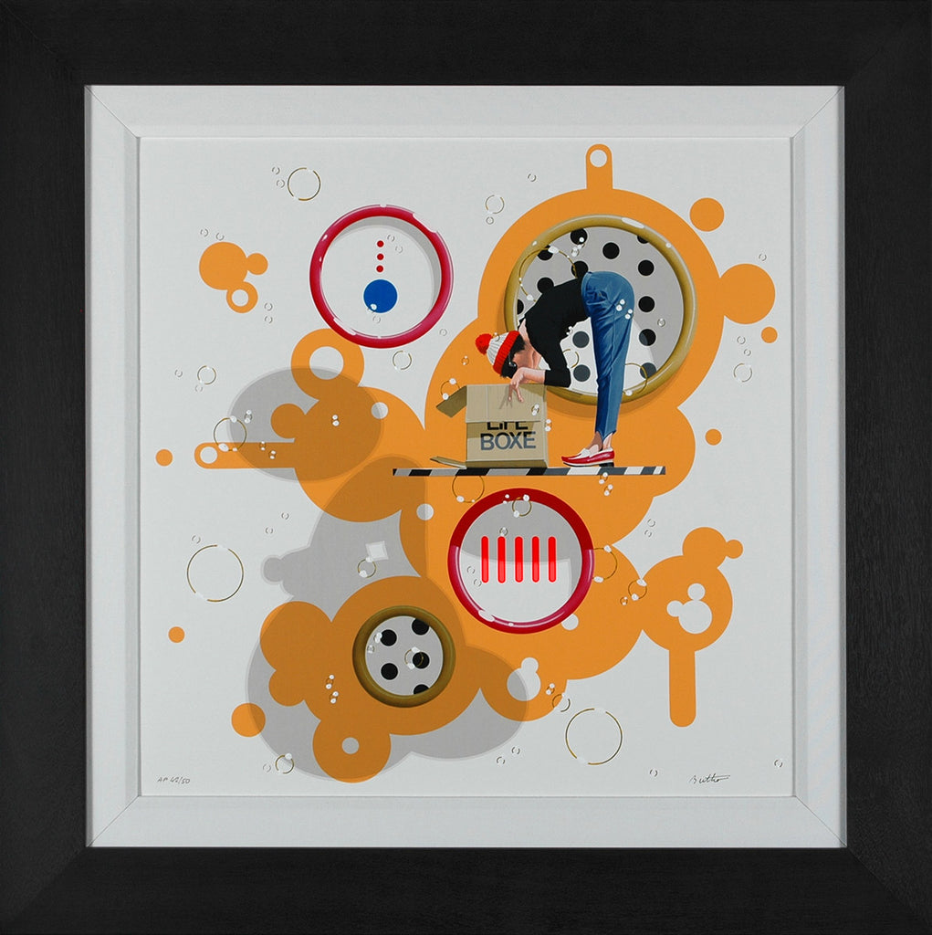 "Life Box" is a serigraph on linen created by Philippe Bertho in 2008. From the edition of 237, the artwork is signed 'Bertho' lower right and annotated lower left. The canvas size is 24 x 24" and the artwork is framed in a contemporary black frame. The artwork ships framed and accompanied by a certificate of authenticity.