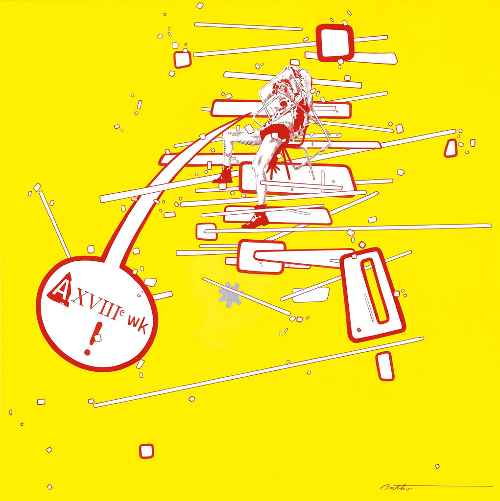 "Houbs!" is an acrylic on canvas painting created by Philippe Bertho in 2012. The artwork is signed 'Bertho' lower right. The canvas size is 31.5 x 31.5". The artwork ships framed.