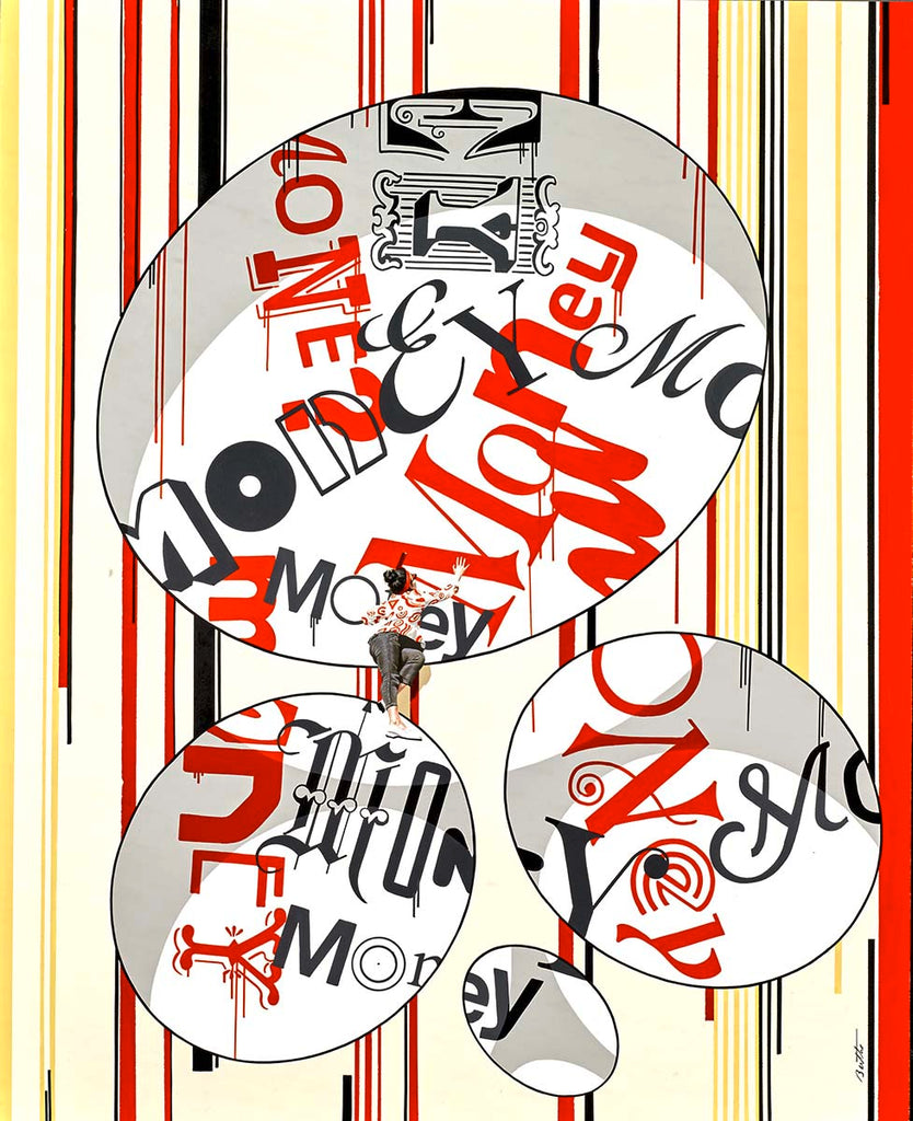 "Money n°1" is an acrylic on canvas painting created by Philippe Bertho in 2017. The painting is signed 'Bertho' lower right vertical. The canvas size is 39.5 x 32" and the artwork is framed in a contemporary white frame. The artwork ships framed.