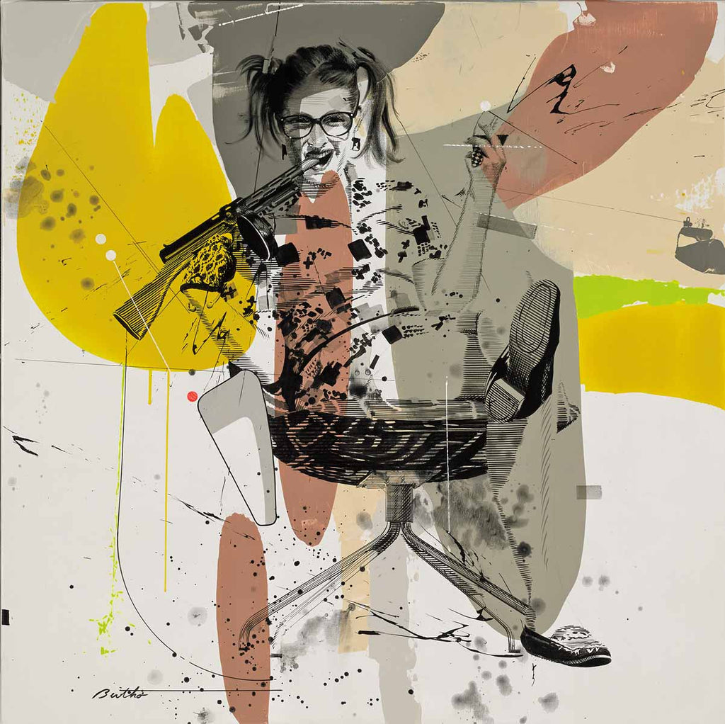 "Très Smash" is an acrylic on canvas painting created by Philippe Bertho in 2014. The artwork is signed 'Bertho' lower left. The canvas size is 27.5 x 27.5". The artwork ships framed. Please contact the gallery regarding available frame options.