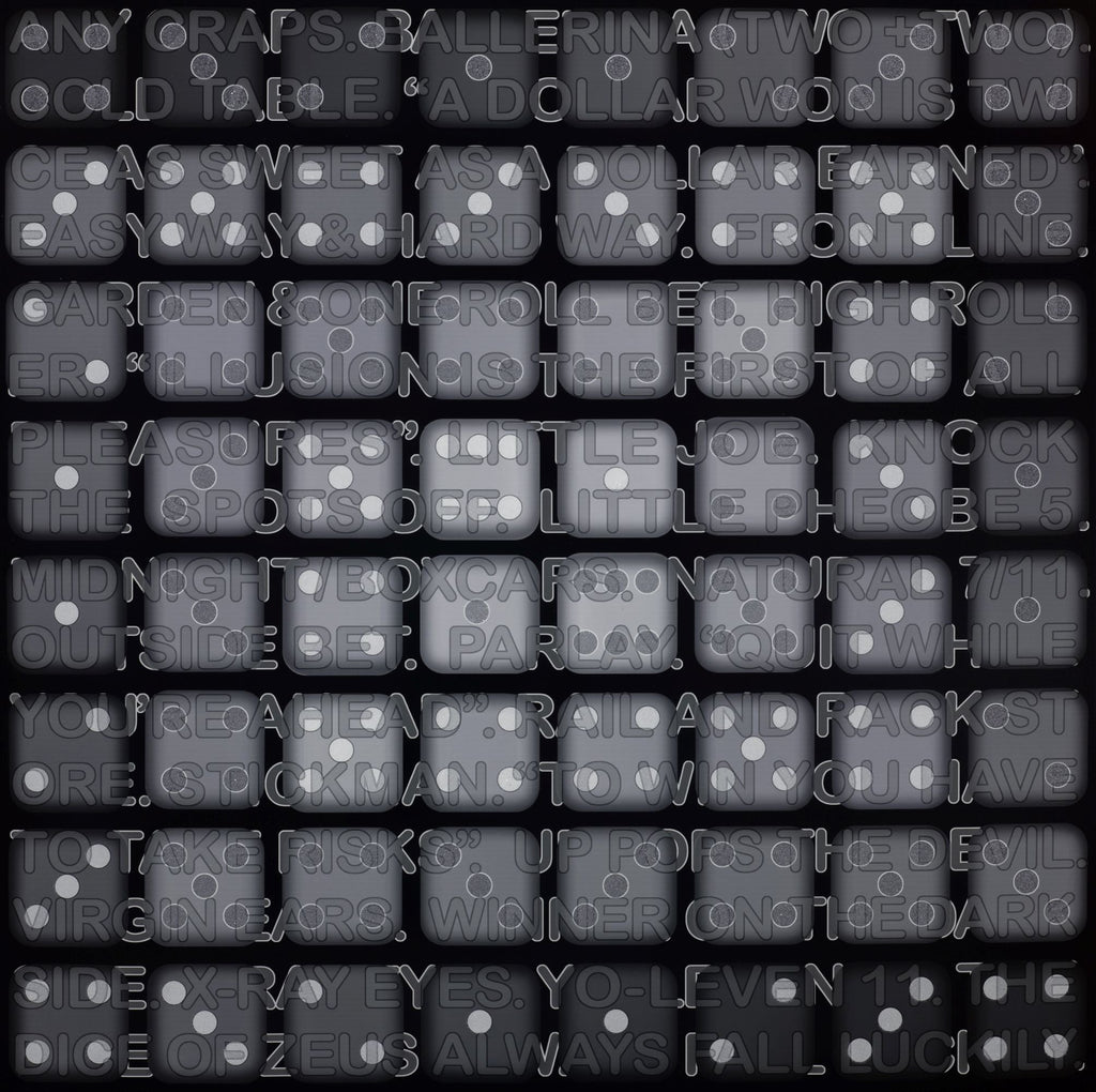 "Snake Eyes #5" is a digital pigment print with diamond dust on canvas created by Brad Faine in 2024 for his 'Snake Eyes' series. The artwork is signed, titled and dated on verso. The canvas size is 41.5 x 41.5" and the artwork is framed in a contemporary black frame. The artwork ships framed.
