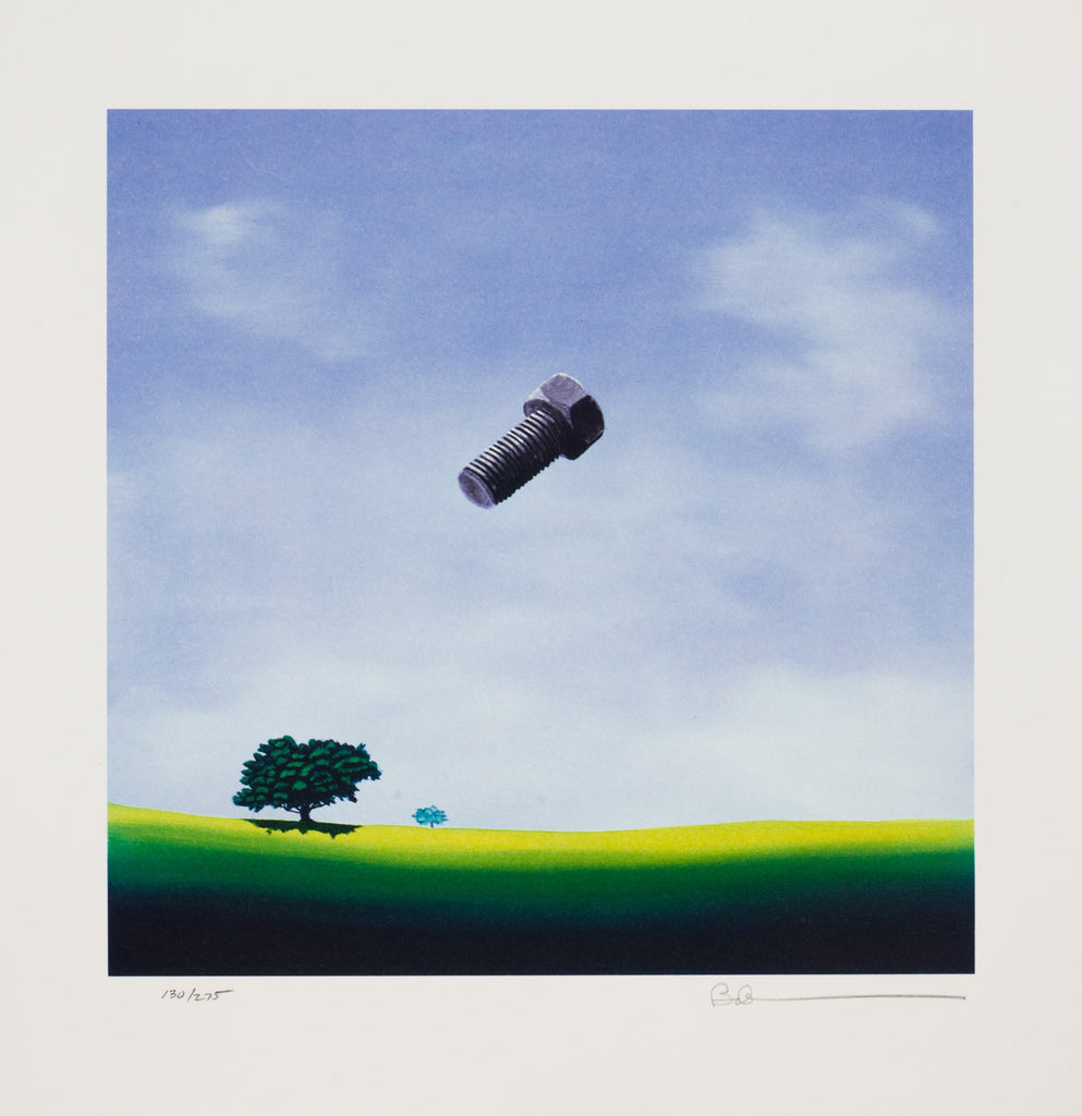 "A Bolt From the Blue" is a lithograph on paper created by Robert Deyber in 2007. From the edition of 395,the artwork is initialed 'BD' lower right and annotated lower left. The image size is 9.5 x 9" and the artwork is framed in a contemporary, silver-tone frame. The artwork ships framed and accompanied by a certificate of authenticity.