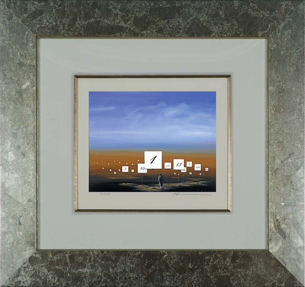 "Back to Square One" is a 7.75 x 9 - inch Robert Deyber lithograph. 'Back to Square One" comes framed, signed, and with a certificate of authenticity.