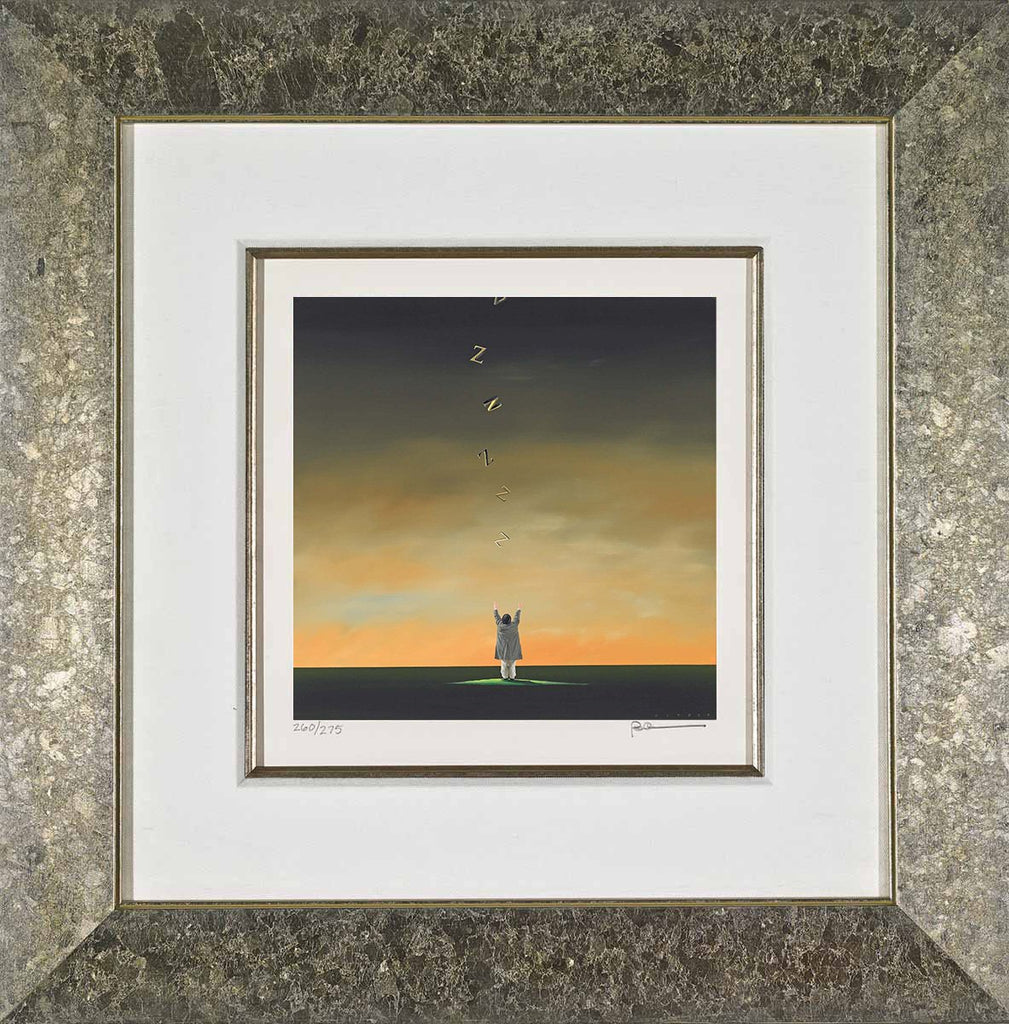 "Catching Z's" is a 9.5 x 9 - inch Robert Deyber Lithograph. "Catching Z's" comes framed, signed and with a certificate of authenticity.