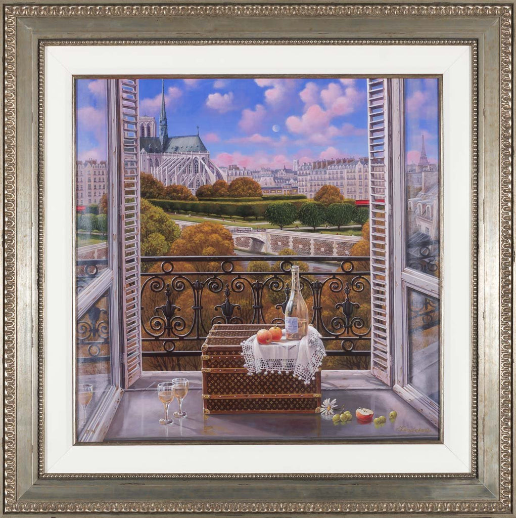 "Happy Hour" is an archival print with hand-made serigraph texture plates created by Liudmila Kondakova in 2019. From the edition of 325, the artwork is signed 'Kondakova' lower right and annotated lower left. The canvas size is 23.75 x 24" and the artwork is framed in a contemporary gold-tone frame. The artwork ships framed and accompanied by a certificate of authenticity.