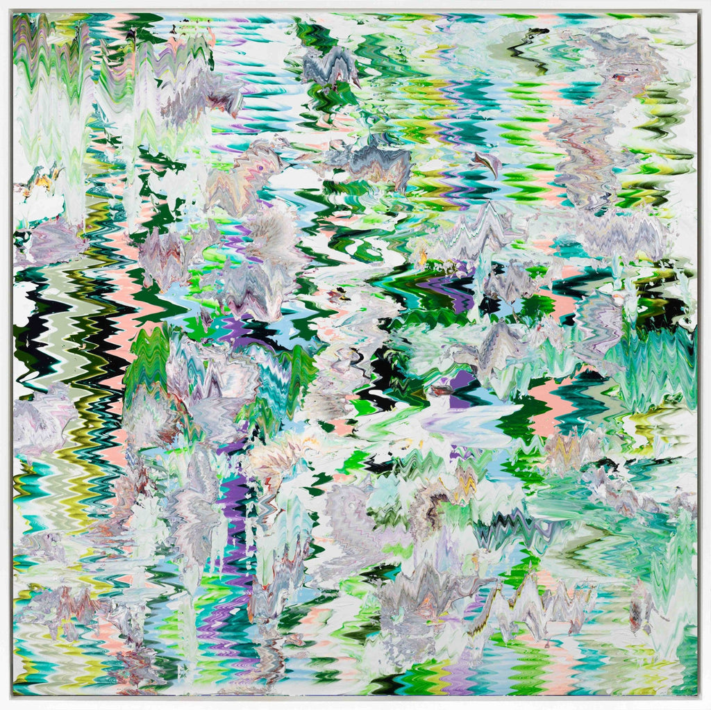 "Matrix" is an acrylic on canvas painting created by Robert Standish in 2023. The painting is signed, titled and dated on verso. The canvas size is 48 x 48" and the artwork is framed in a contemporary white frame. The artwork ships framed.