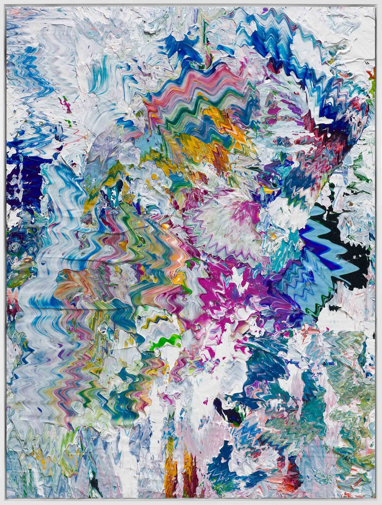 "Coding in Nature" is an acrylic on canvas painting created by Robert Standish in 2023. The painting is signed, titled and dated on verso. The canvas size is 24 x 18" and the artwork is framed in a contemporary white frame. The artwork ships framed.