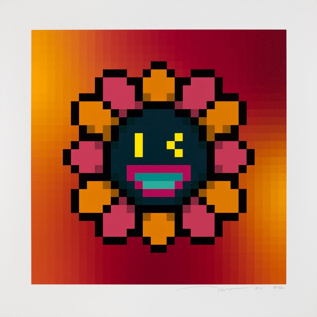 "Murakami.Flower #2821 Smile and Wink" is an archival pigment print and screenprint created by Takashi Murakami in 2023 for his 'Murakami.Flowers' series. From the edition of 126, the artwork is signed, dated and annotated lower right. The image size is 15.75 x 15.75" and the artwork is framed in a contemporary white frame. The artwork ships framed and accompanied by a certificate of authenticity.