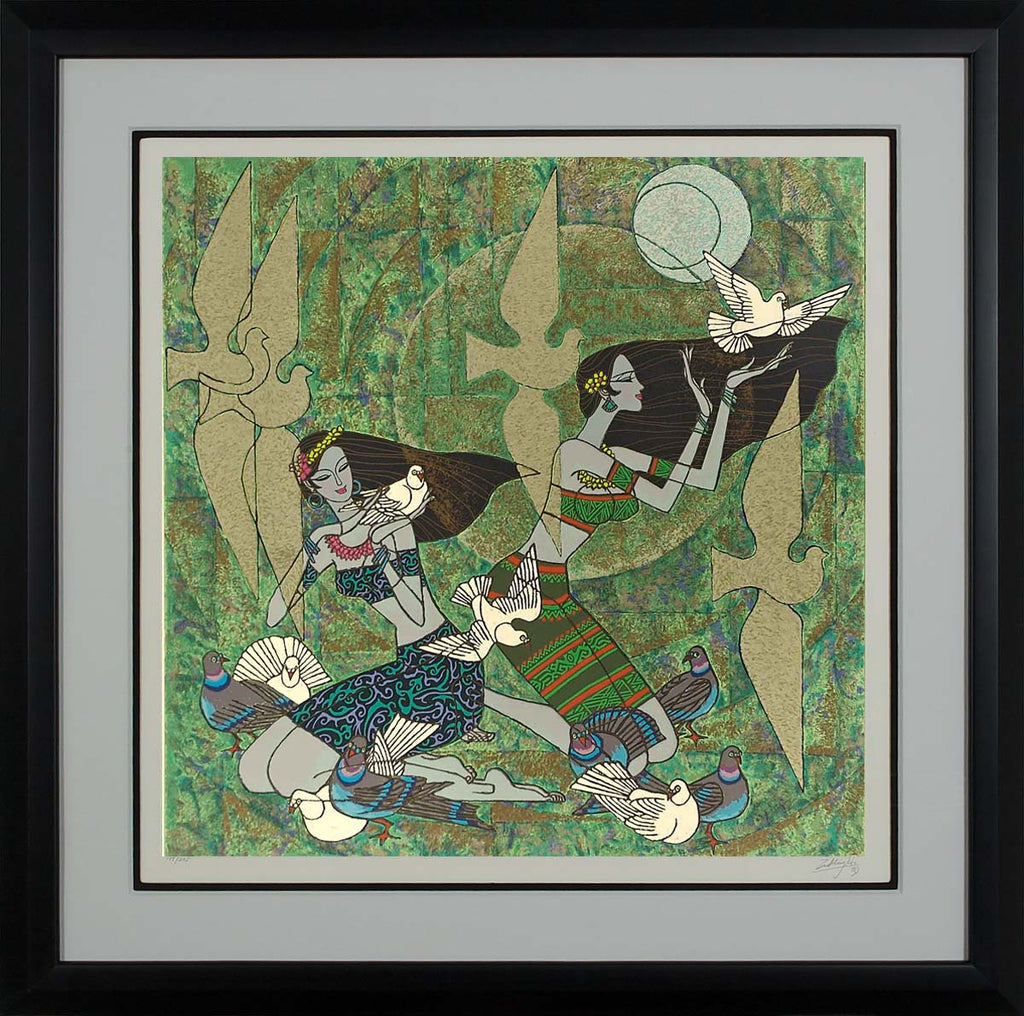 "Freedom to Fly" is a hand-signed serigraph on rice paper created by Richard Zu Ming Ho. The image size is 33" x 33". The artwork ships framed, signed and with a certificate of authenticity.