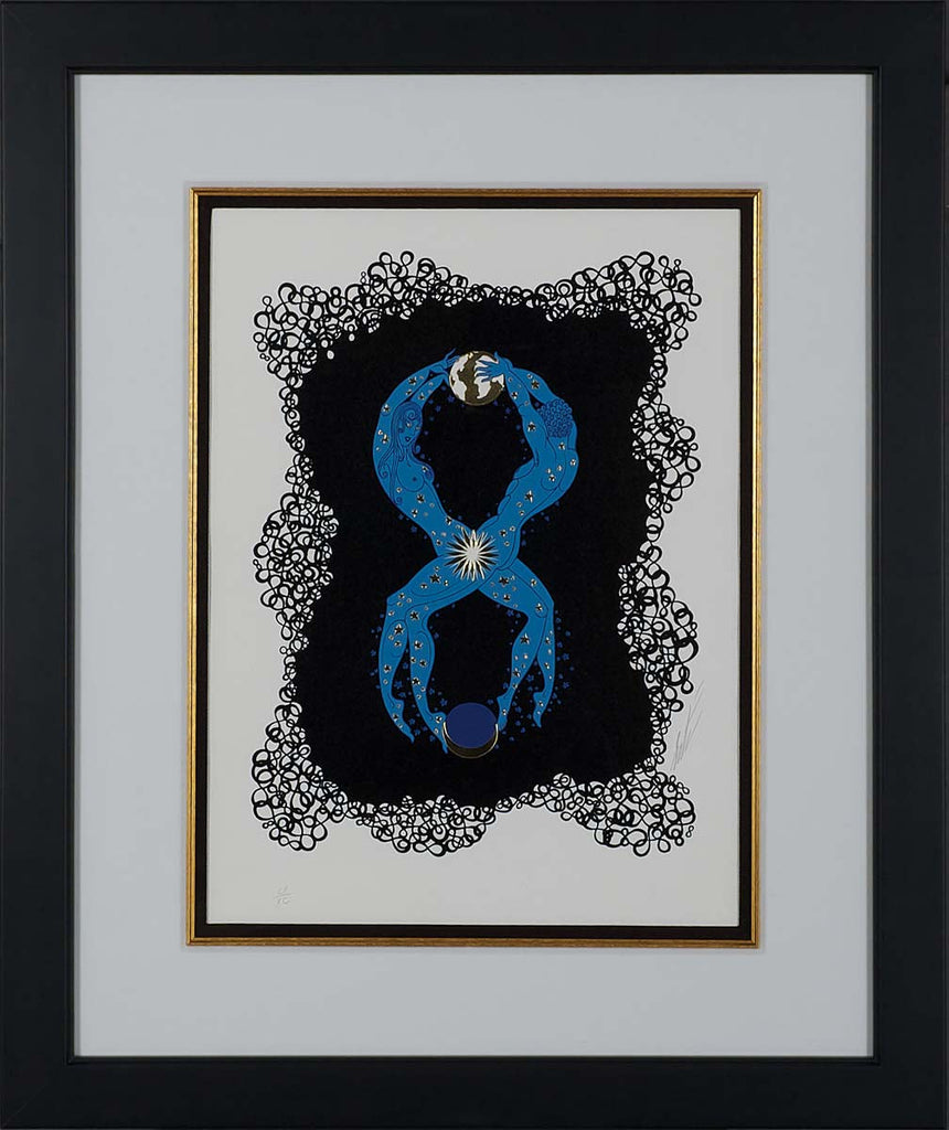 "Numeral 8" is an embossed serigraph created by Erté in 1980 for his 'Numerals' suite. From the edition of 499, the artwork is signed 'Erté' lower right. The image size is 16 x 12" and the artwork is framed in a contemporary black frame. The artwork ships framed and accompanied by a certificate of authenticity.