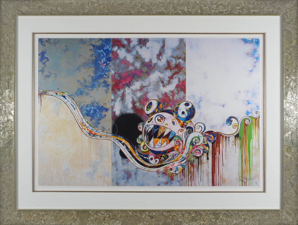 "727-777" is an offset lithograph created by Takashi Murakami in 2016. From the edition of 300, the artwork is signed and annotated lower right. The image size is 25.25 x 38" and the artwork is framed in a contemporary silver-tone frame. The artwork ships framed and accompanied by a certificate of authenticity.