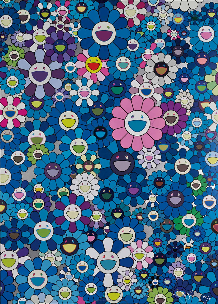 Takashi Murakami was born in Tokyo, Japan on February 1, 1962. His influence for art derives from his mother, who studied needlepoint and designed textiles. Murakami knew he wanted to be an artist when he grew up, and had always taken a large interest in animation and comics. He studied art throughout much of his adolescence, and applied to study at Tokyo National University. He was accepted and later received his Ph.D. in Fine Arts and Music, in which he learned “Nihong”, or traditional Japanese painting. After his studies, Murakami moved to New York in 1994 and was exposed to, and inspired by, Western contemporary artists like Jeff Koons.