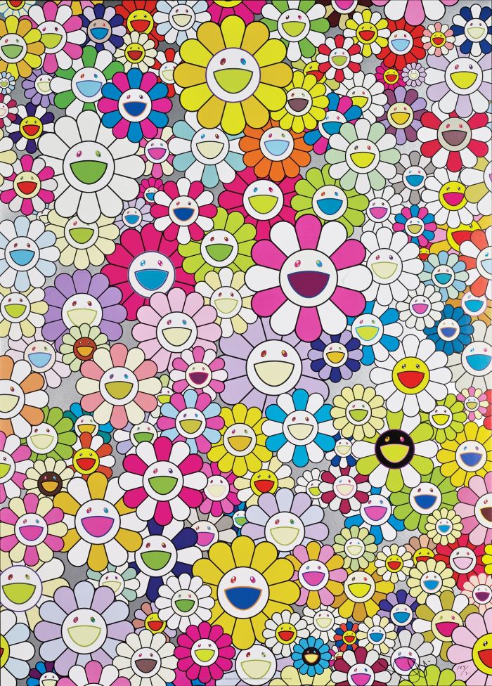 Takashi Murakami was born in Tokyo, Japan on February 1, 1962. His influence for art derives from his mother, who studied needlepoint and designed textiles. Murakami knew he wanted to be an artist when he grew up, and had always taken a large interest in animation and comics. He studied art throughout much of his adolescence, and applied to study at Tokyo National University. He was accepted and later received his Ph.D. in Fine Arts and Music, in which he learned “Nihong”, or traditional Japanese painting. After his studies, Murakami moved to New York in 1994 and was exposed to, and inspired by, Western contemporary artists like Jeff Koons.