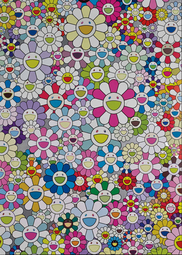 Takashi Murakami was born in Tokyo, Japan on February 1, 1962. His influence for art derives from his mother, who studied needlepoint and designed textiles. Murakami knew he wanted to be an artist when he grew up, and had always taken a large interest in animation and comics. He studied art throughout much of his adolescence, and applied to study at Tokyo National University. He was accepted and later received his Ph.D. in Fine Arts and Music, in which he learned “Nihong”, or traditional Japanese painting. After his studies, Murakami moved to New York in 1994 and was exposed to, and inspired by, Western contemporary artists like Jeff Koons.