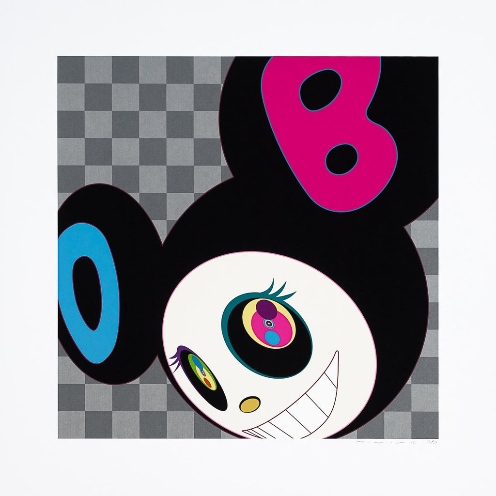 "And Then Black" is a silkscreen created by Takashi Murakami in 2005. From the edition of 50, the artwork is signed, dated and annotated lower right. The image size is 15.75 x 15.75" and the artwork is framed in a white contemporary frame. The artwork is shipped framed and is accompanied by a certificate of authenticity.