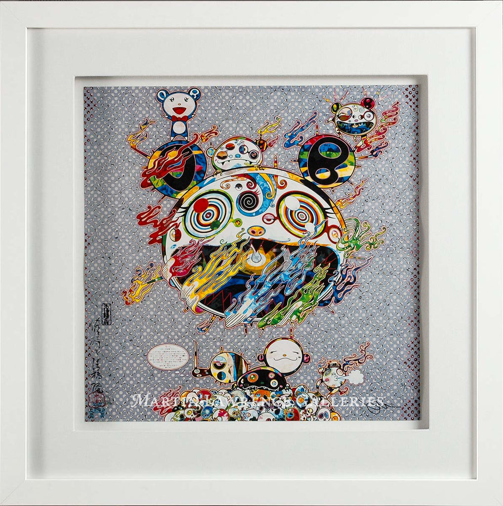 "Chaos" is an offset lithograph created by Takashi Murakami in 2013. From the edition of 300, the artwork is signed and annotated lower right. The image size is 19.75 x 19.75" and the artwork is framed in a contemporary white frame. The artwork ships framed and accompanied by a certificate of authenticity.