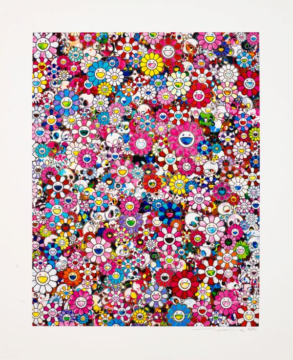 Takashi Murakami was born in Tokyo, Japan on February 1, 1962. His influence for art derives from his mother, who studied needlepoint and designed textiles. Murakami knew he wanted to be an artist when he grew up, and had always taken a large interest in animation and comics. He studied art throughout much of his adolescence, and applied to study at Tokyo National University. He was accepted and later received his Ph.D. in Fine Arts and Music, in which he learned “Nihong”, or traditional Japanese painting. After his studies, Murakami moved to New York in 1994 and was exposed to, and inspired by, Western contemporary artists like Jeff Koons.