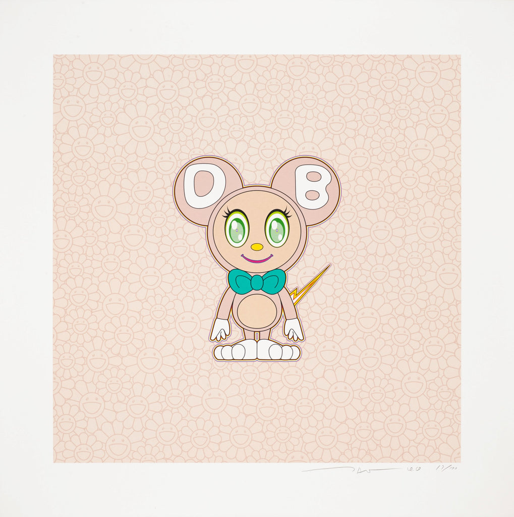 "DOB 2020 Light Pink" is a hand-crafted lithograph created by Takashi Murakami in 2020. From the edition of 100, the artwork is signed, dated and annotated lower right. The image size is 14.5 x 14.5". The artwork ships framed and accompanied by a certificate of authenticity.