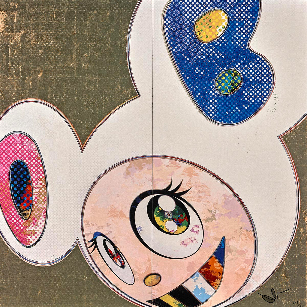 Takashi Murakami was born in Tokyo, Japan on February 1, 1962. His influence for art derives from his mother, who studied needlepoint and designed textiles. Murakami knew he wanted to be an artist when he grew up, and had always taken a large interest in animation and comics. He studied art throughout much of his adolescence, and applied to study at Tokyo National University. He was accepted and later received his Ph.D. in Fine Arts and Music, in which he learned “Nihong”, or traditional Japanese painting. After his studies, Murakami moved to New York in 1994 and was exposed to, and inspired by, Western contemporary artists like Jeff Koons.