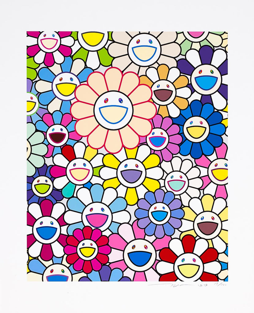 "Field of Flowers" is an archival pigment print created by Takashi Murakmi in 2020. From the edition of 100, the artwork is signed, dated and annotated lower right. The image size is 14.62 x 11.75". The artwork ships framed and accompanied by a certificate of authenticity.