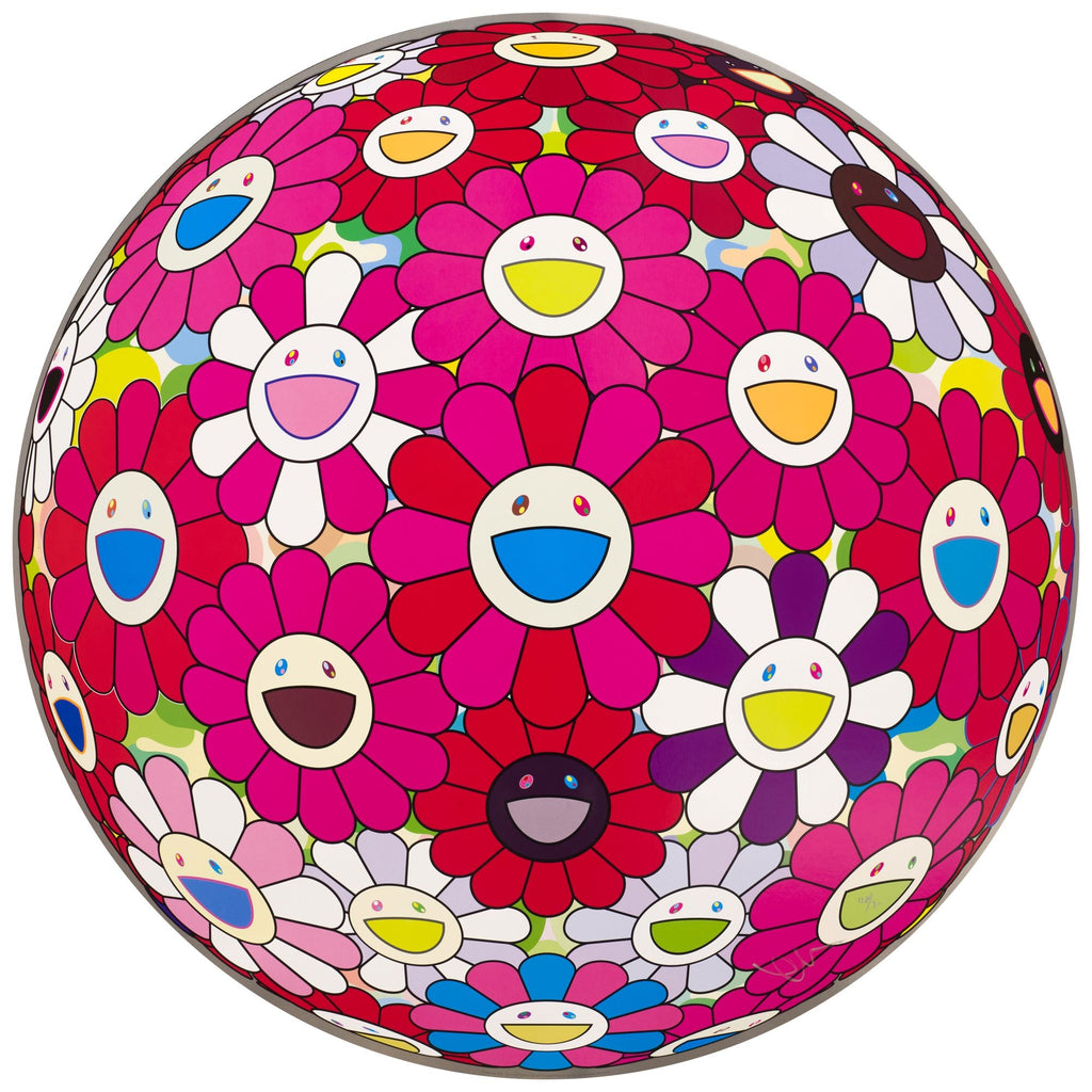 "Flowerball (3D) - Turn Red!" is an offset lithograph created by Takashi Murakami in 2013. From the edition of 300, the artwork is signed and annotated lower right. The image size is 28" in diameter and the artwork is framed in a contemporary plexi-box frame. The artwork ships framed and accompanied by a certificate of authenticity.