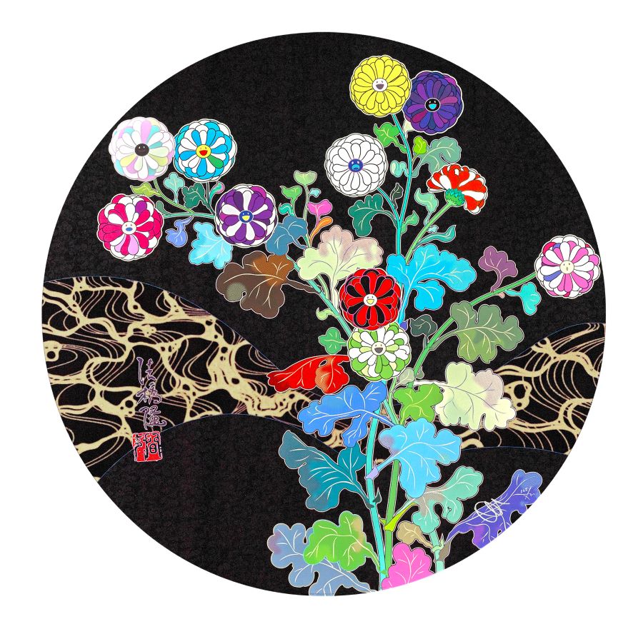 "Kansei: Wildflowers Glowing in the Night" is an offset lithograph created by Takashi Murakami in 2014. From the edition of 300, the artwork is signed and annotated lower right. The image size is 28" diameter and the artwork is framed in a contemporary plexi-box frame. The artwork ships framed and accompanied by a certificate of authenticity.