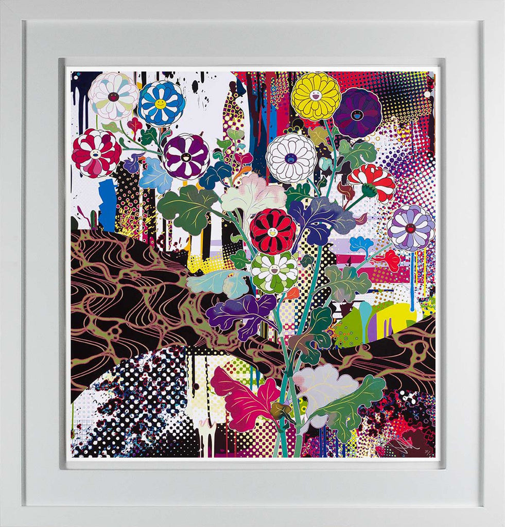 "Korin: Kyoto" is an offset lithograph created by Takashi Murakami in 2020. From the edition of 300, the artwork is signed and annotated lower right. The image size is 30 x 28.25". The artwork ships framed and accompanied by a certificate of authenticity.