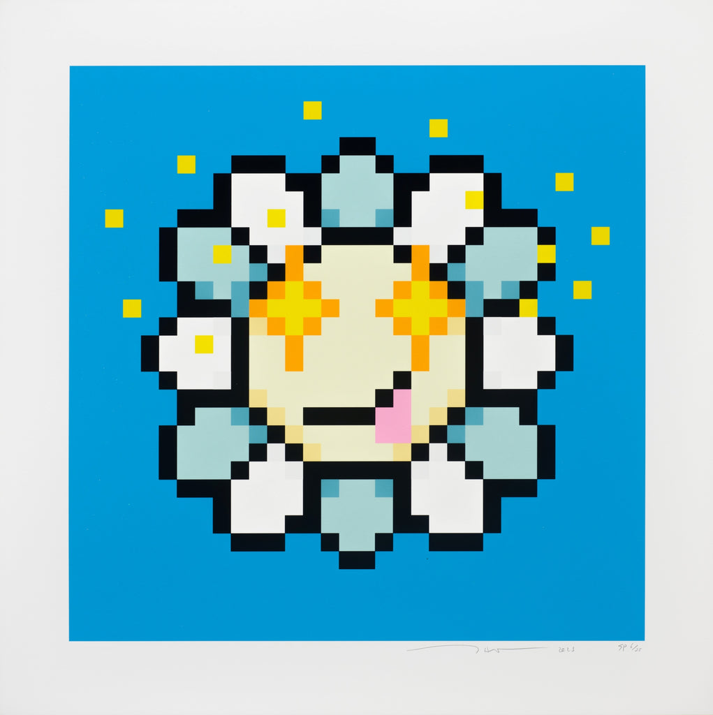 "Murakami.Flower #0113 Tokimeki" is an archival pigment print and screenprint created by Takashi Murakami in 2023 for his 'Murakami.Flowers' series. From the edition of 126, the artwork is signed, dated and annotated lower right. The image size is 15.75 x 15.75" and the artwork is framed in a contemporary white frame. The artwork ships framed and accompanied by a certificate of authenticity.