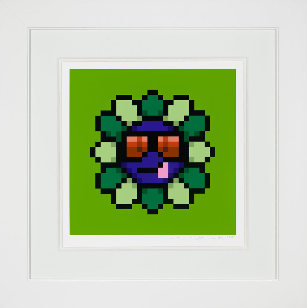 "Murakami.Flower #10397 Brown Sunglasses" is an archival pigment print and screenprint created by Takashi Murakami in 2023 for his 'Murakami.Flowers' series. From the edition of 126, the artwork is signed, dated and annotated lower right. The image size is 15.75 x 15.75" and the artwork is framed in a contemporary white frame. The artwork ships framed and accompanied by a certificate of authenticity.