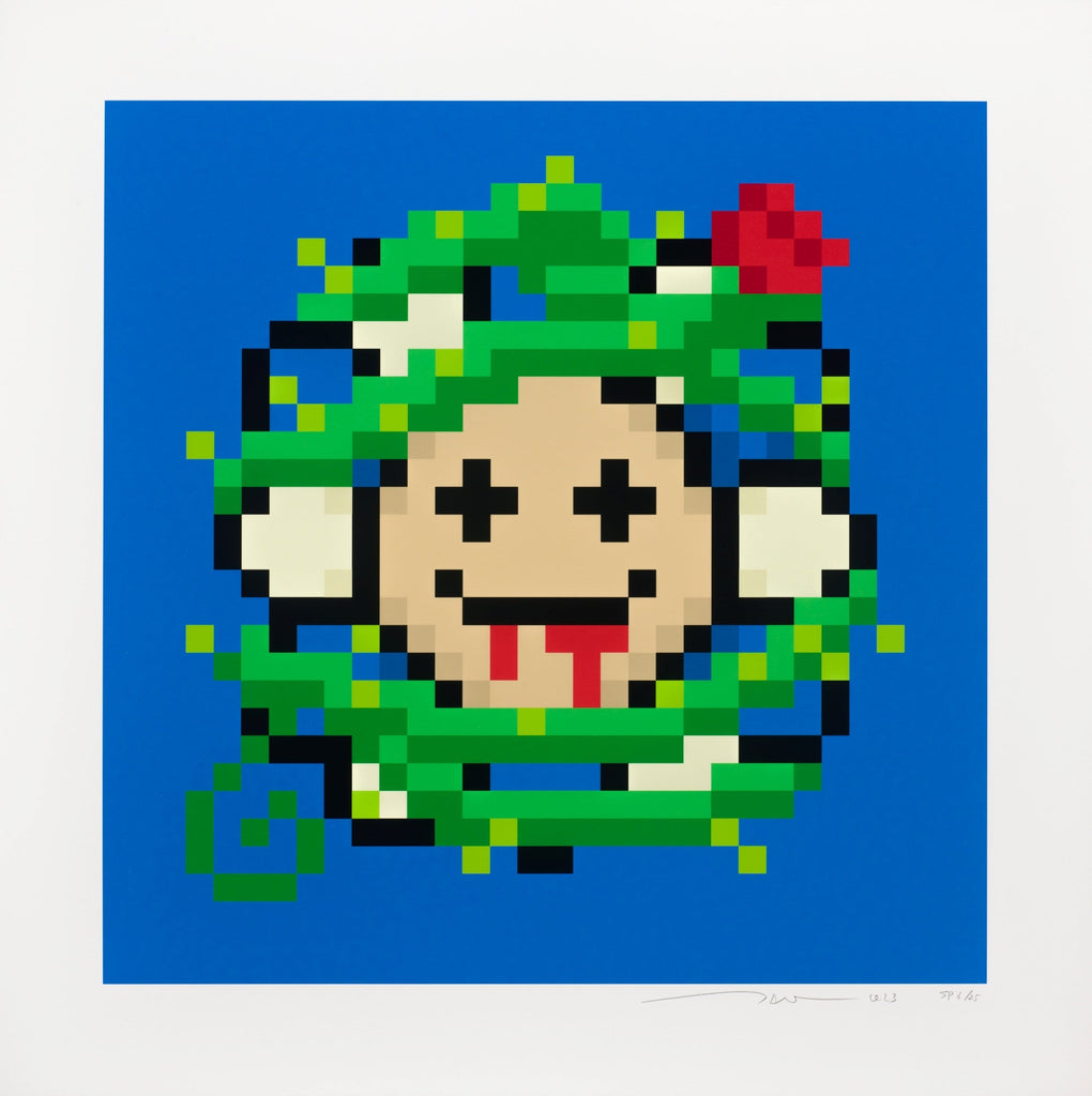 Takashi Murakami was born in Tokyo, Japan on February 1, 1962. His influence for art derives from his mother, who studied needlepoint and designed textiles. Murakami knew he wanted to be an artist when he grew up, and had always taken a large interest in animation and comics. He studied art throughout much of his adolescence, and applied to study at Tokyo National University. He was accepted and later received his Ph.D. in Fine Arts and Music, in which he learned “Nihong”, or traditional Japanese painting. After his studies, Murakami moved to New York in 1994 and was exposed to, and inspired by, Western contemporary artists like Jeff Koons.
