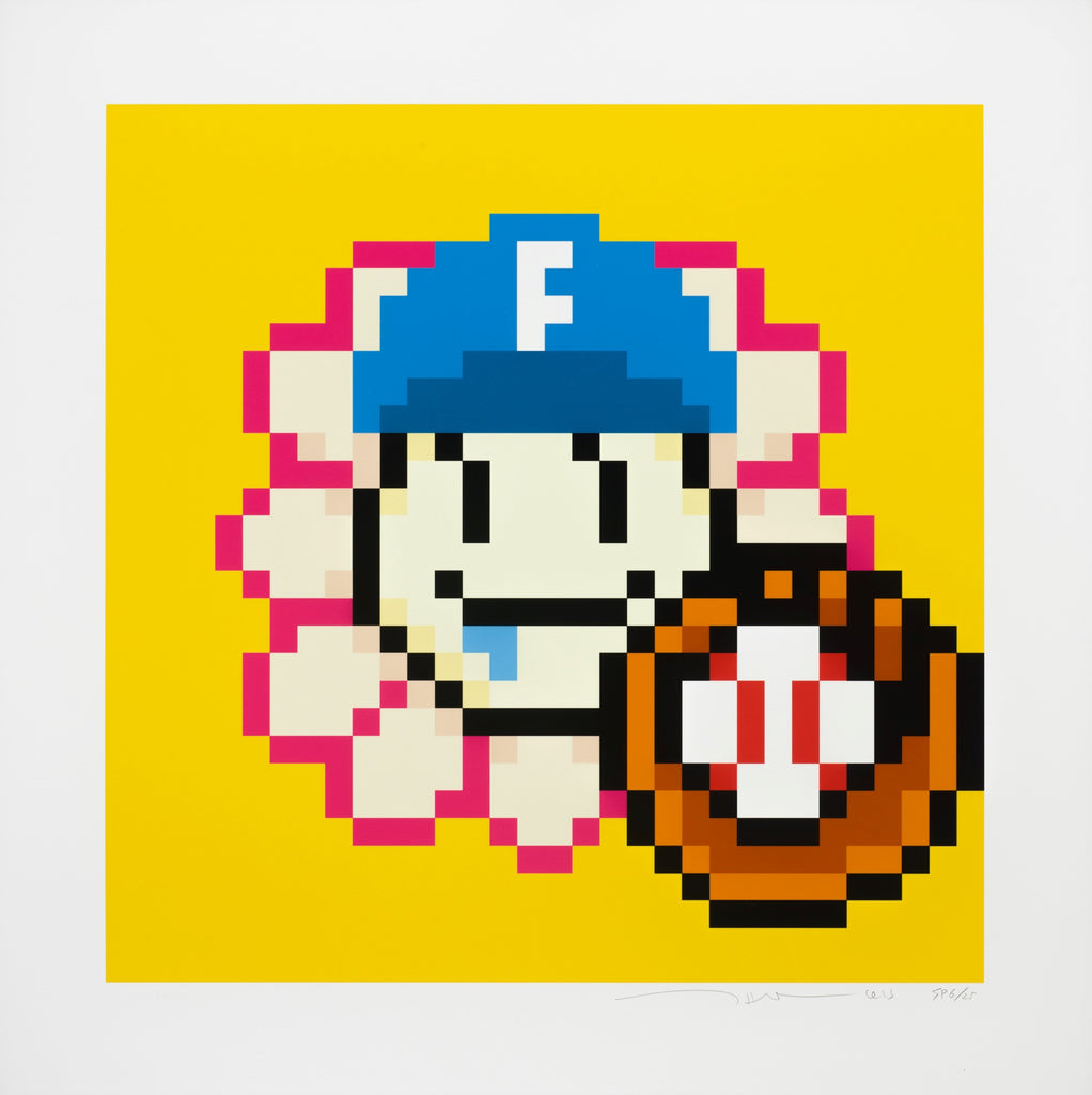"Murakami.Flower #9275 Baseball Catcher" is an archival pigment print and screenprint created by Takashi Murakami in 2023 for his 'Murakami.Flowers' series. From the edition of 126, the artwork is signed, dated and annotated lower right. The image size is 15.75 x 15.75" and the artwork is framed in a contemporary white frame. The artwork ships framed and accompanied by a certificate of authenticity.